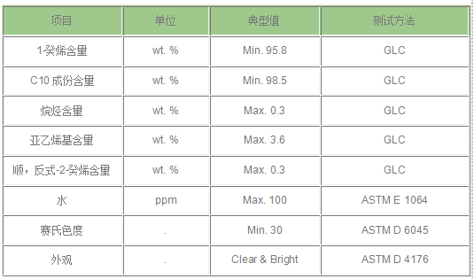 本產(chǎn)品用作生產(chǎn)聚 α-烯烴(PAO),多元醇酯類.