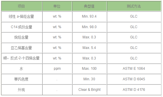 本產品用作生產C14醇,烷基苯,α-烯烴磺酸鹽,ADAM等表面活性劑產品,兼有很好的去污能力和生物降解性.